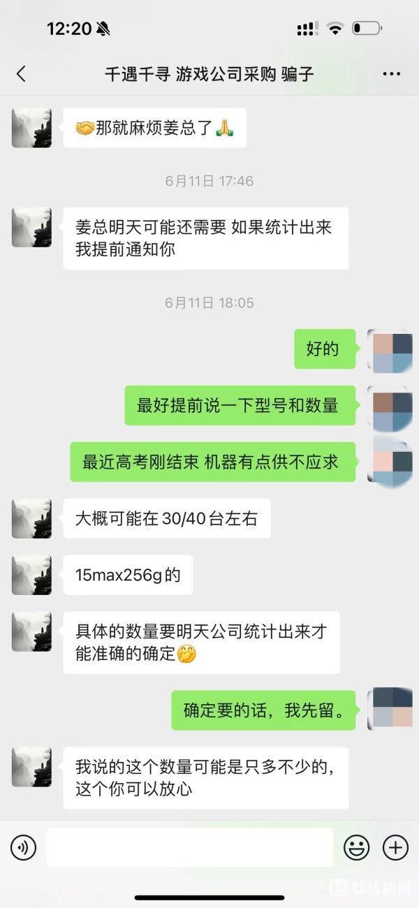 姜先生说,6月7日,有人通过他网店上留的信息加了他的微信,称有意购买手机。起初,对方只购买了几部手机。6月11日,对方称公司搞活动,需要再采购三四十部手机,总计27550元。款项很快打了过来,但是姜先生却很警惕,他发现打款人信息不全,让对方提供打款人身份证等信息。对方以这是财务人员个人隐私为由拒绝了。姜先生便要求对方提供公司的采购合同,对方发来了一份合同,但是姜先生看到后更加起疑了:“对方提供的合同上的公章,没有组织机构代码,明显是假的”。