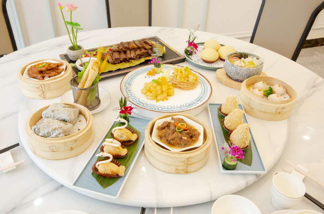 🌝特色菜品:顺德鱼生、深海三文鱼刺身、招牌烧鹅、盐焗乳鸽、黑松露焗鲍鱼、煎焗白鳝、特色手抓羊排,各式早茶点心。