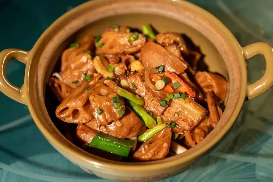 🌝特色菜品:隔水蒸青头鸭、避风塘炒蟹、碧绿藕片、脆皮烧鸡与蜜汁烧排骨等。